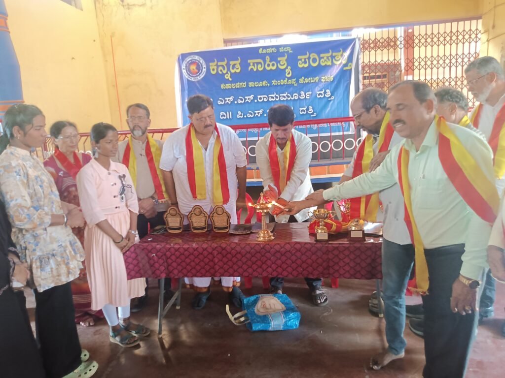 ಕಸಾಪದ ಸುಂಠಿಕೊಪ್ಪ ಹೋಬಳಿ ಅಧ್ಯಕ್ಷರಾದ ಪಿ.ಎಫ್.ಸಬಾಸ್ಟಿನ್ ಅಧ್ಯಕ್ಷತೆಯಲ್ಲಿ ಜರುಗಿದ ಕಾರ್ಯಕ್ರಮದಲ್ಲಿ ಮುಖ್ಯ ಅತಿಥಿಗಳಾಗಿ ಕಾಫಿ ಬೆಳೆಗಾರರಾದ, ಎಂ.ಎನ್.ಕಾಳಪ್ಪ, ಕಾಫಿ ಬೆಳೆಗಾರರು, ಎಂ.ಪಿ. ಕೇಶವಕಾಮತ್ ಜಿಲ್ಲಾಧ್ಯಕ್ಷರು ಕಸಾಪ, ಕೊಡಗು. ಕೆ.ಎಸ್.ನಾಗೇಶ್ ಅಧ್ಯಕ್ಷರು ಕಸಾಪ ಕುಶಾಲನಗರ ತಾಲೂಕು ಘಟಕ, ಎನ್.ಜಿ.ಶ್ರೀನಿವಾಸ್ ವಿಜಯಾ ಪ್ಲಾಂಟೇಶನ್ಸ್ ಸುಂಠಿಕೊಪ್ಪ, ಬಾಲಕೃಷ್ಣ, ಉಪ ಪ್ರಾಂಶುಪಾಲರು ಸರ್ಕಾರಿ ಪ್ರೌಡಶಾಲೆ,ಸುಂಠಿಕೊಪ್ಪ, ಸೋಮಯ್ಯ ಮುಖ್ಯಶಿಕ್ಷಕರು ಸರ್ಕಾರಿ ಪ್ರೌಡಶಾಲೆ, ೭ನೇ ಹೊಸಕೋಟೆ ಭಾಗವಹಿಸಿದ್ದರು. ಹಾಗೂಎಸ್.ನಾಗರಾಜ್, ಟಿ.ವಿ.ಶೈಲಾ, ಪ್ರಧಾನ ಕಾರ್ಯದರ್ಶಿಗಳು, ಕಸಾಪ, ಕುಶಾಲನಗರ ತಾಲೂಕು ಘಟಕ ಕೆ.ಎಸ್.ಅನೀಲ್, ಲೀಲಾ ಮೇದಪ್ಪ, ಪ್ರಧಾನ ಕಾರ್ಯದರ್ಶಿಗಳು ಕಸಾಪ, ಸುಂಠಿಕೊಪ್ಪ ಹೋಬಳಿ ಕರಬಸಪ್ಪ ಹೇಮಪ್ಪ ಆಡ್ಕಣಿ, ಗೀತ ಬಸಪ್ಪ, ವಹೀದ್ ಜಾನ್, ಎಂ.ಎಸ್.ಸುನೀಲ್ ಉಪಾಧ್ಯಕ್ಷರು ಕಸಾಪ ಸುಂಠಿಕೊಪ್ಪ ಹೋಬಳಿ,ದೇವಿಪ್ರಸಾದ್ ಕಾಯರ್ ಮಾರ್, ಜಿ.ಬಿ.ಹರೀಶ್, ಬಿ.ಸಿ.ದಿನೇಶ್, ಸಂಘಟನಾ ಕಾರ್ಯದರ್ಶಿಗಳು ಕಸಾಪ, ಕುಶಾಲನಗರ ತಾಲೂಕು ಘಟಕಸರ್ವ ಸದ್ಯಸರು ಕುಶಾಲನಗರ ತಾಲೂಕು ಮತ್ತು ಸುಂಠಿಕೊಪ್ಪ ಹೋಬಳಿ ಕಸಾಪ , ನವೀನ ಚಿಣ್ಣಪ್ಪ , ಶಾಲೆಯ ವಿದ್ಯಾರ್ಥಿಗಳು ಹಾಗೂ ಶಿಕ್ಷಕ ವೃಂದದವರು ಉಪಸ್ಥಿತರಿದ್ದರು.