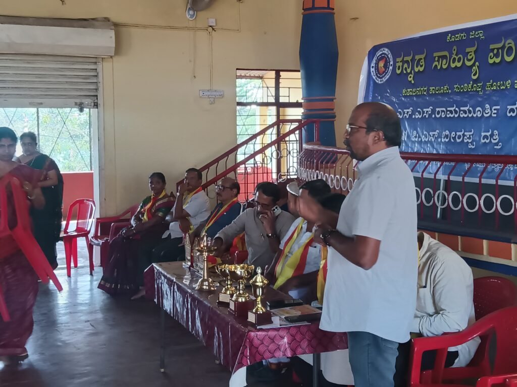 ಕನ್ನಡ ಸಾಹಿತ್ಯ ಪರಿಷತ್ತು ಸುಂಠಿಕೊಪ್ಪ ಹೋಬಳಿ, ಕುಶಾಲನಗರ ತಾಲೂಕು ಘಟಕ ವತಿಯಿಂದ 10ನೇ ತರಗತಿಯ ಪರೀಕ್ಷೆಯಲ್ಲಿ ಕನ್ನಡ ಮಾಧ್ಯಮದಲ್ಲಿ ಅತಿ ಹೆಚ್ಚು ಅಂಕ ಪಡೆದ ವಿದ್ಯಾರ್ಥಿನಿಯರಿಗೆ ಸನ್ಮಾನಿಸಲು ಸ್ಥಾಪಿಸಲಾಗಿರುವ ಶ್ರೀ ಎಸ್.ಎಸ್.ರಾಮಮೂರ್ತಿ ದತ್ತಿ ಹಾಗೂ ದಿ।। ಪಿ.ಎಸ್.ಬೀರಪ್ಪ ದತ್ತಿ ನಿಧಿ ಕಾರ್ಯಕ್ರಮದಲ್ಲಿ ಭಾಗವಹಿಸಿ ಮುನಿರ್ ಅಹಮದ್ ಮಾತನಾಡಿದರು.