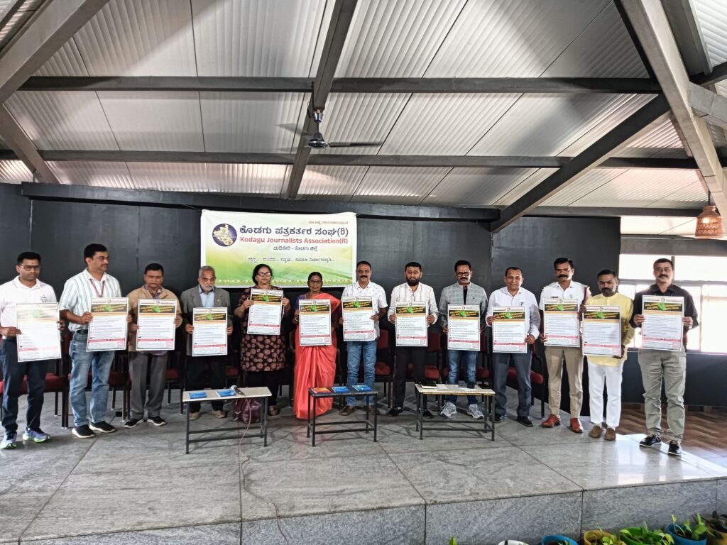 ಕೊಡಗು ಪತ್ರಕರ್ತರ ಸಂಘದಿಂದ ಹೊರತರಲಾದ ನಮ್ಮ ಮಡಿಕೇರಿ – ನಮ್ಮ ಹೆಮ್ಮೆ ಎಂಬ ಪ್ರವಾಸಿಗರು ಮಡಿಕೇರಿಯಲ್ಲಿ ಅನುಸರಿಸಬೇಕಾದ ನಿಯಮಗಳ ಮಾಹಿತ ಪೋಸ್ಟರ್ ನ್ನು ಗಣ್ಯರು ಲೋಕಾರ್ಪಣೆಗೊಳಿಸಿದರು.