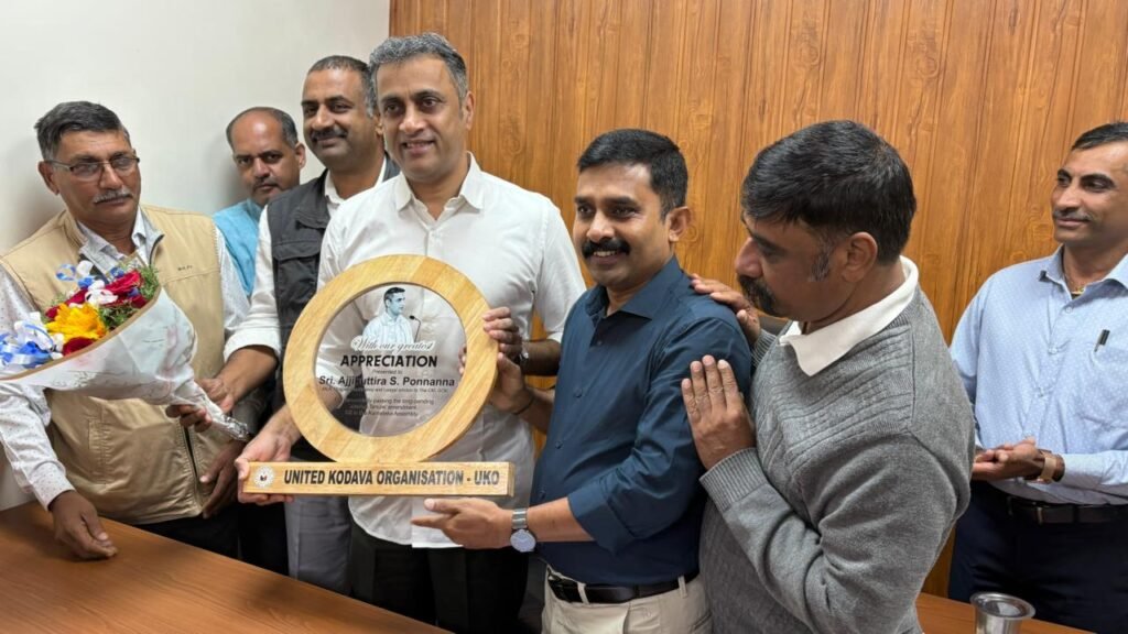 ವಿರಾಜಪೇಟೆ ಡಿ.23: ದಶಕಗಳ ಸಮಸ್ಯೆಯಾಗಿ ಕೊಡಗಿನ ಜಮ್ಮಾ ಹಿಡುವಳಿದಾರರನ್ನು ಕಾಡಿದ್ದ ಜಮ್ಮಾ ಸಮಸ್ಯೆಗೆ ಶಾಸ್ವತ ಪರಿಹಾರವನ್ನು ಒದಗಿಸುವ ನಿಟ್ಟಿನಲ್ಲಿ, ಕರ್ನಾಟಕ ಭೂಕಂದಾಯ ಕಾಯ್ದೆಯ ತಿದ್ದುಪಡಿ ವಿದೇಯಕವನ್ನು ಸದನದಲ್ಲಿ ಮಂಡಿಸಿ, ಯಶಸ್ವೀಯಾಗಿ ಅನುಮೋದನೆ ಪಡೆಯುವಲ್ಲಿ ನಿರ್ಣಾಯಕ ಪಾತ್ರ ನಿರ್ವಹಿಸಿದ ವಿರಾಜಪೇಟೆ ಶಾಸಕರು ಹಾಗು ಮುಖ್ಯ ಮಂತ್ರಿಗಳ ಕಾನೂನು ಸಲಹೆಗಾರರೂ ಆದ ಅಜ್ಜಿಕುಟ್ಟೀರ ಎಸ್. ಪೊನ್ನಣ್ಣನವರನ್ನು ಇಂದು ಯುನೈಟೆಡ್ ಕೊಡವ ಆರ್ಗನೈಸೇಷನ್ – ಯುಕೊ ಸಂಘಟನೆಯ ಸದಸ್ಯರು ವಿರಾಜಪೇಟೆಯ ಅವರ ಗೃಹ ಕಛೇರಿಯಲ್ಲಿ ಬೇಟಿಮಾಡಿ ಸ್ಮರಣಿಕೆ ನೀಡಿ ಅಭಿನಂದಿಸಿದರು.