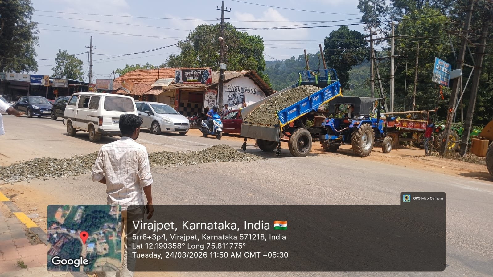 ವಿರಾಜಪೇಟೆ ಗೋಣಿಕೊಪ್ಪ ಮುಖ್ಯ ರಸ್ತೆಯಲ್ಲಿ ಬರುವ ಪಂಜರ್‌ ಪೇಟೆ ಸರ್ವೋದಯ ಕಾಲೇಜಿನ ತಿರುವಿನಲ್ಲಿ ರಸ್ತೆ ಮಧ್ಯದಲ್ಲಿ ಗುಂಡಿ ಬಿದ್ದು ವಾಹನ ಸವಾರರು ಸದರಿ ಸ್ಥಳದಲ್ಲಿ  ವಾಹನ ಓಡಿಸಲು ಕಷ್ಟ ಪಡುವುದನ್ನು ಗಮನಿಸಿದ ನಾವು ನೀರು ಸರಬರಾಜು ಇಲಾಖೆಯ ಅಧಿಕಾರಿಗಳಾದ ಶ್ರೀಮಾನ್‌ ವಿಷ್ಣುರವರು ಮತ್ತು ಭೂ ಸಾರಿಗೆ ಇಲಾಖೆಯ ಅಧಿಕಾರಿಗಳಾದ ಶ್ರೀಮಾನ್ ನಾಗರಾಜು ಮತ್ತು ಶ್ರೀಮಾನ್‌ ಅಶೋಕ್‌ರವರನ್ನು  ಸದರಿ ಗುಂಡಿಯನ್ನು ಮುಚ್ಚಿ ವಾಹನ ಸವಾರರು ಸುಗಮವಾಗಿ ಸಂಚಾರ ಮಾಡಲಿಕ್ಕೆ ಅನುಕೂಲ ಮಾಡಿಕೊಡಲಿಕ್ಕೆ ಮನವಿ ಮಾಡಿಕೊಂಡ ಮೇರೆಗೆ ತಾವುಗಳು ಕೂಡಲೇ ತುರ್ತಾಗಿ ಸದರಿ ರಸ್ತೆ ಗುಂಡಿಯನ್ನು ಮುಚ್ಚಿ ವಾಹನ ಸವಾರರಿಗೆ ಸುಗಮ ಸಂಚಾರಕ್ಕೆ ಅನುಕೂಲ ಮಾಡಿ ಕೊಟ್ಟಿರುವುದು ನಮಗೆ ಅತೀವ ಸಂತಸ ತಂದಿದೆ ತಮಗೆಲ್ಲರಿಗೂ ಕೊಡಗಿನ ಕಾವೇರಿ ಮಾತೆಯ ಮತ್ತು ತಾಯಿ ಚಾಮುಂಡೇಶ್ವರಿಯ ಅನುಗ್ರಹ ಸದಾ ನಿಮ್ಮ ಮೇಲೆ ಇರಲೆಂದು ನಾವು ದೇವರಲ್ಲಿ ಪ್ರಾರ್ಥಿಸುತ್ತೇವೆ.🙏🙏